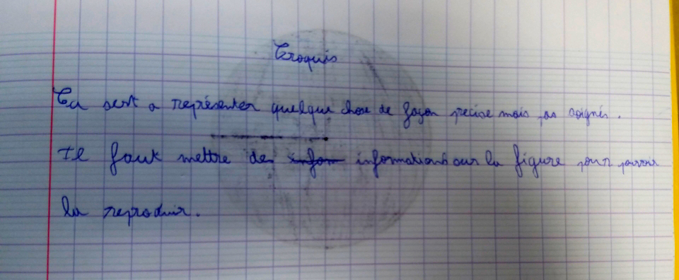 Après ce temps de travail nous faisons un bilan, et les élèves rédigent leur cours sur le croquis: